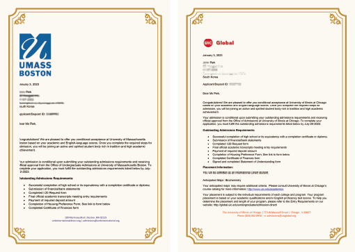 토플 : 65점UMASS, Boston, The University of Illinois at Chicago, University of Utah, American University 등 합격